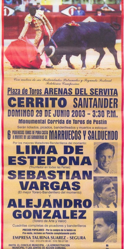 El Cerrito (Norte Santander) Colombia, se lidiaran 6 toros de la ganadería de Garzón, para los diestros: